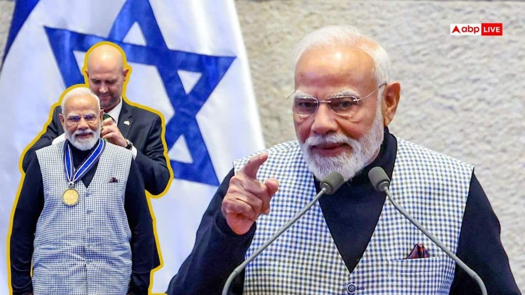 इजरायल दौरे पर पहुंचे प्रधानमंत्री नरेंद्र मोदी ने बुधवार (25 फरवरी 2026) को वहां की संसद (कनेसट) को संबोधित किया. इजरायली सासंदों में गजब का उत्साह दिखा. जैसे ही पीएम मोदी संसद में दाखिल हुए सांसदों ने खड़े होकर अभिवादन किया फिर संसद मोदीमय हो गई और मोदी-मोदी के नारों से गूंज गई. पीएम मोदी को स्पीकर ऑफ कनेसट मेडल से सम्मानित किया गया. यह इजरायली संसद का सर्वोच्च सम्मान है. पीएम मोदी ने इजरायल की संसद से आतंकवाद और उसे पनाह देने वाले देश को कड़ी चेतावनी दी. इस दौरान उन्होंने भारत में हुए पाकिस्तान प्रायोजित आतंकी हमले का भी जिक्र किया. आतंकवाद पर बरसे पीएम मोदी पीएम मोदी ने गाजा पीस प्लान, आतंकवाद, 7 अक्टूबर 2023 को इजरायल में हुए हमले, दोनों देशों के बीच के संबंध पर अपनी बात रखी. उन्होंने कहा, 'इजरायल की तरह, भारत भी आतंकवाद को कतई बर्दाश्त नहीं करने की अपनी नीति पर अडिग