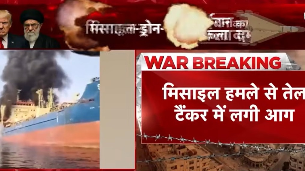 स्ट्रेट ऑफ होर्मुज क्षेत्र में युद्ध का प्रभाव अब स्पष्ट रूप से दिखने लगा है. ईरान, इराक, कुवैत और UAE के तट के पास लगभग 150 तेल के टैंकर और अन्य जहाज फंसे हुए हैं. ओमान के तट के पास एक तेल टैंकर में भीषण आग लग गई है. यह आग एक मिसाइल हमले के कारण लगी, जब टैंकर स्ट्रेट ऑफ होर्मुज से गुजर रहा था। इस हमले से तेल टैंकर में भारी नुकसान हुआ. देखें वीडियो.