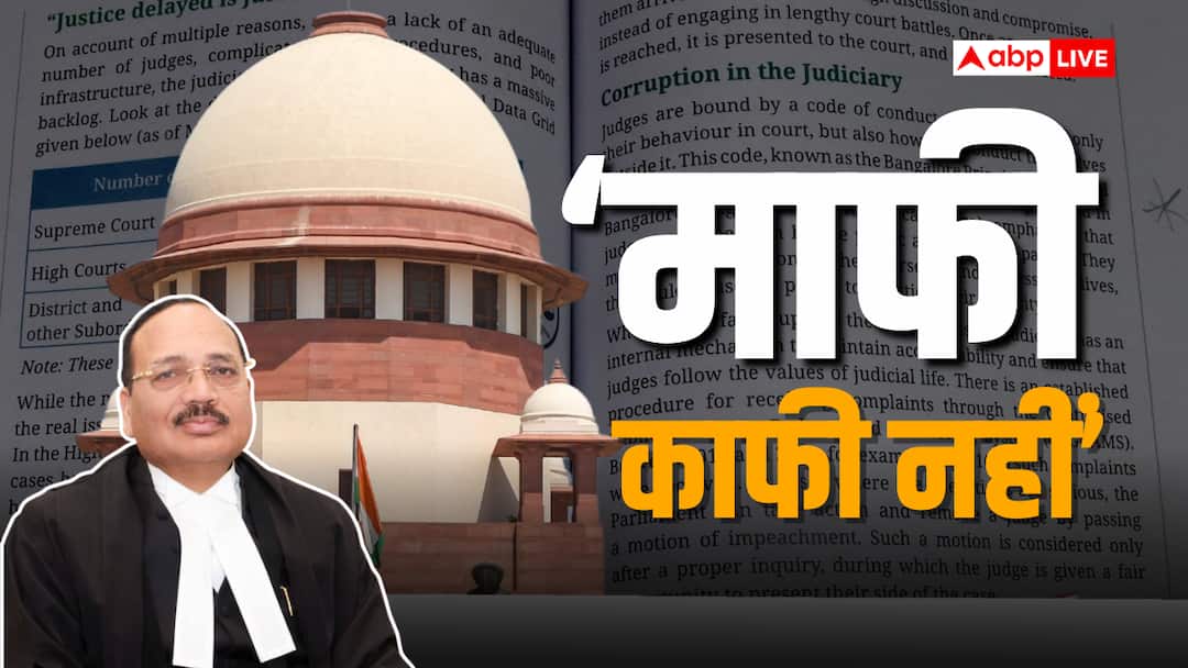 सुप्रीम कोर्ट ने गुरुवार (26 फरवरी, 2026) को एनसीईआरटी बुक के चैप्टर मामले पर स्वत: संज्ञान लेते हुए सुनवाई की, जिसमें मुख्य न्यायाधीश सूर्यकांत बेहद नाराज नजर आए. इस दौरान शिक्षा विभाग ने सुप्रीम कोर्ट से माफी मांगी, लेकिन सीजेआई ने कहा कि जब तक ये नहीं पता चल जाता कि इसके पीछे कौन-कौन है और जब तक वह संतुष्ट नहीं होते, तब तक सुनवाई चलेगी. मुख्य न्यायाधीश सूर्यकांत, जस्टिस जॉयमाल्या बागची और जस्टिस विपुल एम. पंचौली की बेंच मामले पर सुनवाई कर रही थी. इस दौरान शिक्षा विभाग की तरफ से सॉलिसिटर जनरल तुषार मेहता मौजूद थे. सीनियर एडवोकेट कपिल सिब्बल और अभिषेक मनु सिंघवी ने भी सुनवाई में चैप्टर को लेकर आपत्तियां जताईं. क्लास 8 की सोशल साइंस की नई किताब में ज्यूडिशियरी को लेकर एक चैप्टर है, जिसका टाइटल 'न्यायापालिका में भ्रष्टाचार' है. इस चैप्टर में कोर्ट्स में पेंडिंग केस जैसी कई जानकारियां शामिल हैं. सीजेआई सूर्यकांत ने