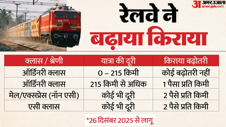 ट्रेन का सफर आज से होगा महंगा: रेलवे ने जारी की किराया वृद्धि की अधिसूचना; देखें किस श्रेणी में कितनी बढ़ोतरी, Railway Ministry on Thursday officially notified a hike in train ticket prices