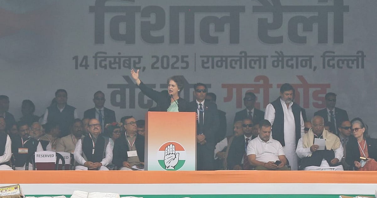 दिल्ली में कांग्रेस की रैली: रामलीला मैदान में मोदी सरकार पर जमकर बरसीं प्रियंका गांधी, 'वोट चोर, गद्दी छोड़…'