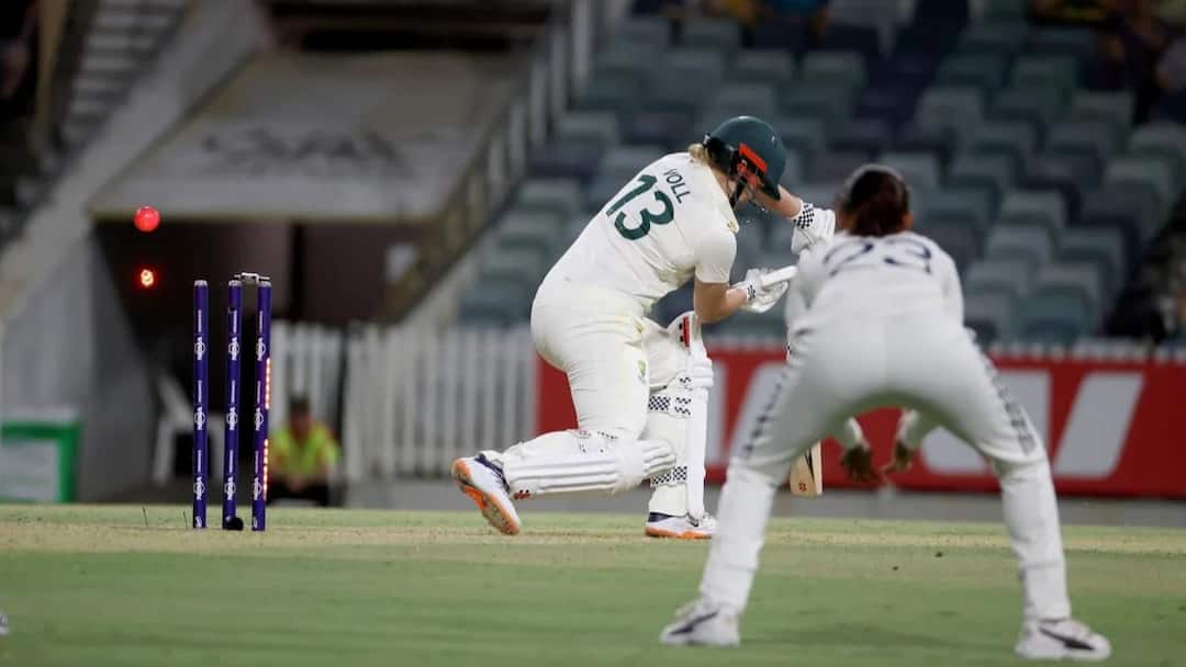 IND W vs AUS W Test Day 1 HighlightsL: पर्थ टेस्ट में पहले दिन का खेल खत्म होने तक ऑस्ट्रेलिया ने 3 विकेट के नुकसान पर 96 रन बना लिए हैं. ऑस्ट्रेलियाई टीम पहली पारी में अब भी 102 रनों से पिछड़ रही है. सीरीज के इस एकमात्र टेस्ट मैच में भारतीय टीम पहले बल्लेबाजी करने आई थी, जो केवल 198 रनों पर सिमट गई. टीम इंडिया के लिए जेमिमा रोड्रीग्स अकेली बल्लेबाज रहीं, जिन्होंने अर्धशतक पूरा किया. स्मृति मंधाना से लेकर कप्तान हरमनप्रीत कौर भी फ्लॉप रहीं. भारत ने बनाए 198 भारतीय टीम पहले बल्लेबाजी करने आई स्मृति मंधाना ज्यादा देर क्रीज पर नहीं टिक पाइन और केवल 4 रन बनाकर आउट हो गईं. शेफाली वर्मा ने जरूर 35 रनों की पारी खेल टीम इंडिया के स्कोरबोर्ड को तेजी से आगे बढ़ाया. प्रतिका रावल और उनके बाद कप्तान हरमनप्रीत कौर भी सस्ते में आउट हो गईं. देखते ही देखते भारतीय