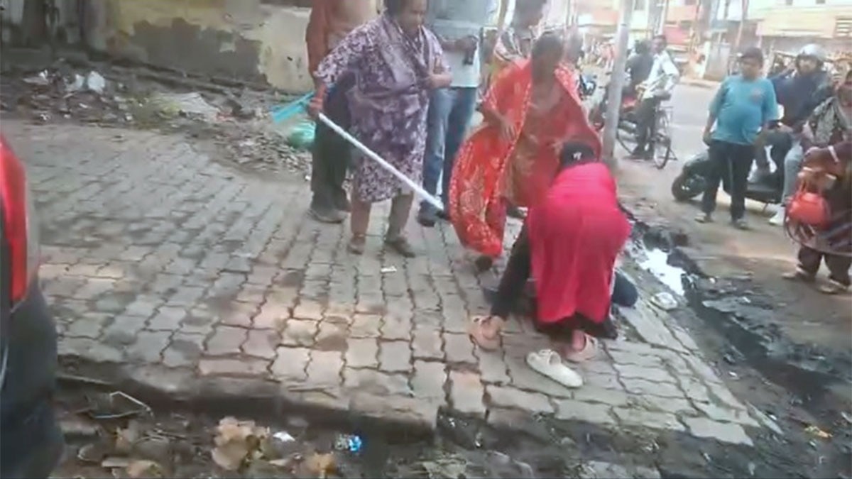 बाल पकड़कर जमीन पर गिरा-गिराकर डंडा मारती रहीं तीन महिलाएं, भीड़ के सामने खड़ी रही पुलिस