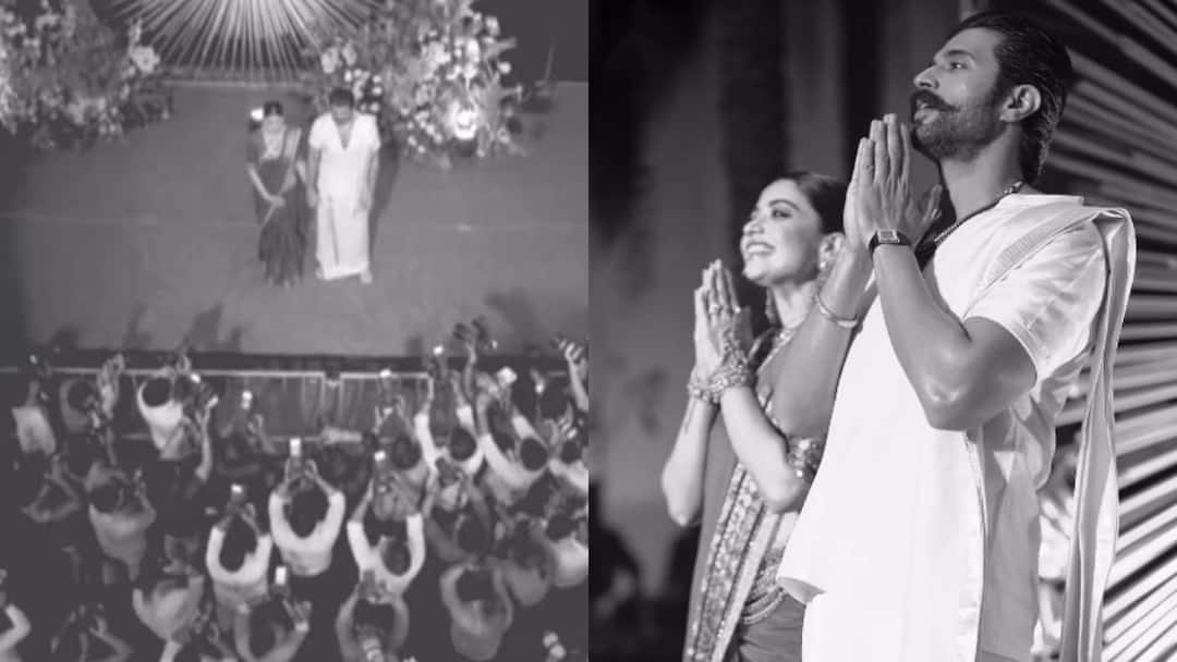 रश्मिका मंदाना और विजय देवरकोंडा की शादी पिछले काफी दिनों से चर्चा का विषय है. बीते दिन हैदराबाद में हुए रिसेप्शन के बाद इन दोनों की शादी के सारे फंक्शंस खत्म हुए हैं. अब हाल ही में दोनों ने सोशल मीडिया पर अपने वेडिंग रिसेप्शन का एक वीडियो शेयर किया है. जिसके जरिए दोनों ने अपेन फैंस को धन्यवाद दिया है. वेडिंग रिसेप्शन वीडियोरश्मिका और विजय ने अपने ऑफिशियल इंस्टाग्राम अकाउंट के जरिए एक वीडियो शेयर किया है. इस वीडियो में विजय और रश्मिका के रिसेप्शन के क्लिप्स हैं. जिसमें दोनों साथ में वेन्यू पर हाथ पकड़कर आ रहे हैं. दोनों मीडिया मीडिया के सामने पोज दे रहे हैं, हाथ जोड़कर धन्यवाद भी दे रहे हैं. इस वीडियो में कुछ ब्लैक एंड व्हाइट क्लिप्स हैं और कुछ कलर्ड भी हैं. View this post on Instagram