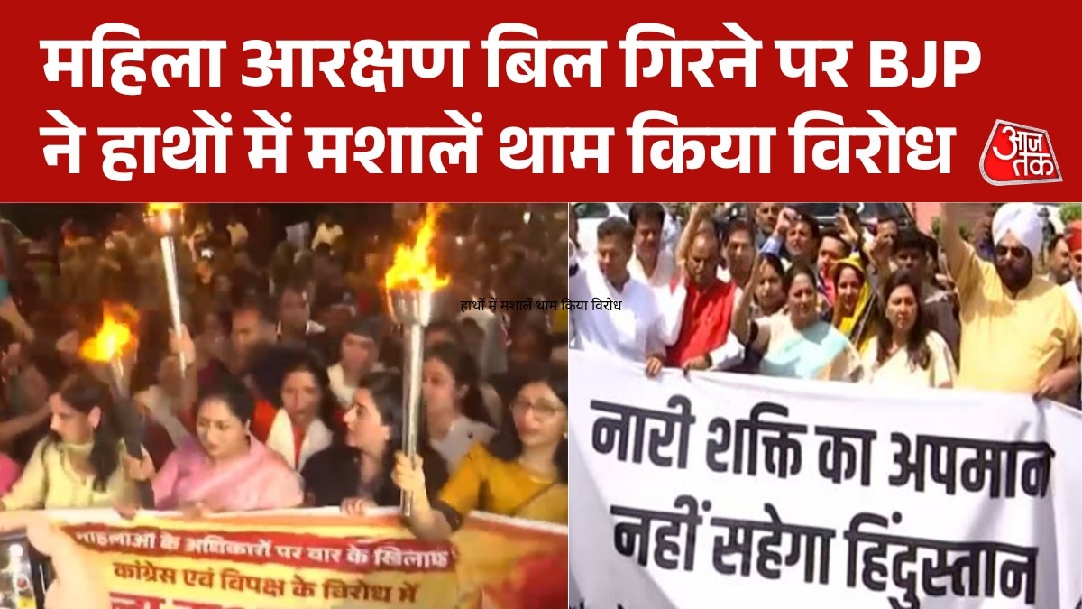 महिला आरक्षण बिल के लोकसभा में गिरने के बाद से ही बीजेपी विपक्ष पर हमलावर है. इसी कड़ी में दिल्ली की सीएम रेखा गुप्ता ने राजधानी में 'जन आक्रोश रैली' की अगुवाई की. सीएम रेखा और बीजेपी नेताओं ने मशाल जुलूस निकाला. देखें वीडियो.