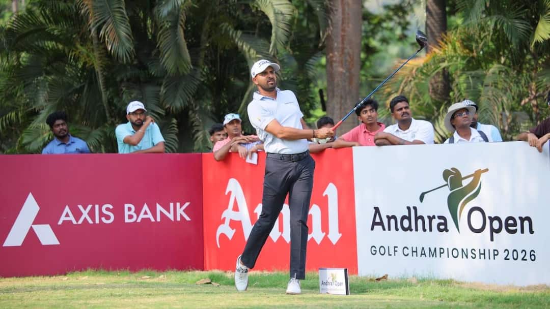 Andhra Open 2026 Golf Championship: विशाखापत्तनम में खेले जा रहे 1 करोड़ रुपये की इनामी राशि वाले आंध्र ओपन 2026 के तीसरे दिन खालिन जोशी ने एक अंडर 70 का स्कोर बनाया. तीसरे राउंड के बाद उनका कुल स्कोर सात अंडर 206 है और तीन शॉट की बढ़त के साथ पहले स्थान पर विराजमान हैं. 33 वर्षीय बेंगलुरु के खालिन जोशी (68-68-70), छह बार के विजेता रहे हैं. उन्होंने सप्ताह की शुरुआत डीपी वर्ल्ड पीजीटीआई इवेंट में 68-68 के राउंड से की थी, अब अंतिम राउंड में मजबूत बढ़त के साथ उतरेंगे. दुबई निवासी यश मजमुदार (71-69-69) और दिल्ली के राशिद खान (70-72-67) चार अंडर 209 के स्कोर के साथ संयुक्त दूसरे स्थान पर बने हुए हैं. मजमुदार ने 69 का स्कोर किया, जबकि राशिद ने दिन का सर्वश्रेष्ठ 67 स्कोर कर खिताब जीतने की दौड़ में अपनी स्थिति मजबूत की. जोशी ने राउंड की खराब शुरुआत के बाद दमदार वापसी