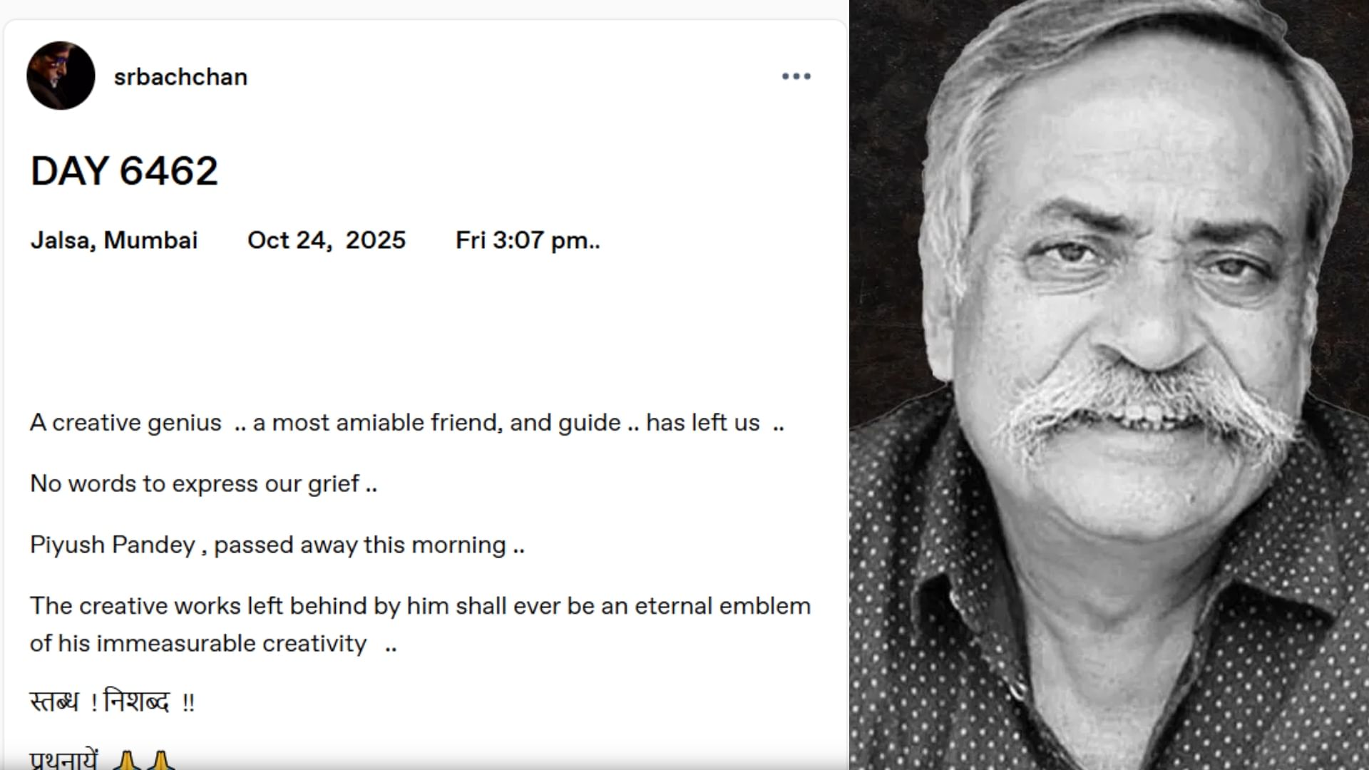 ‘तुम्हारी बहुत याद आएगी’ पीयूष पांडे के निधन पर शाहरुख खान ने जताया शोक, अमिताभ बच्चन ने भी जाहिर किया दुख