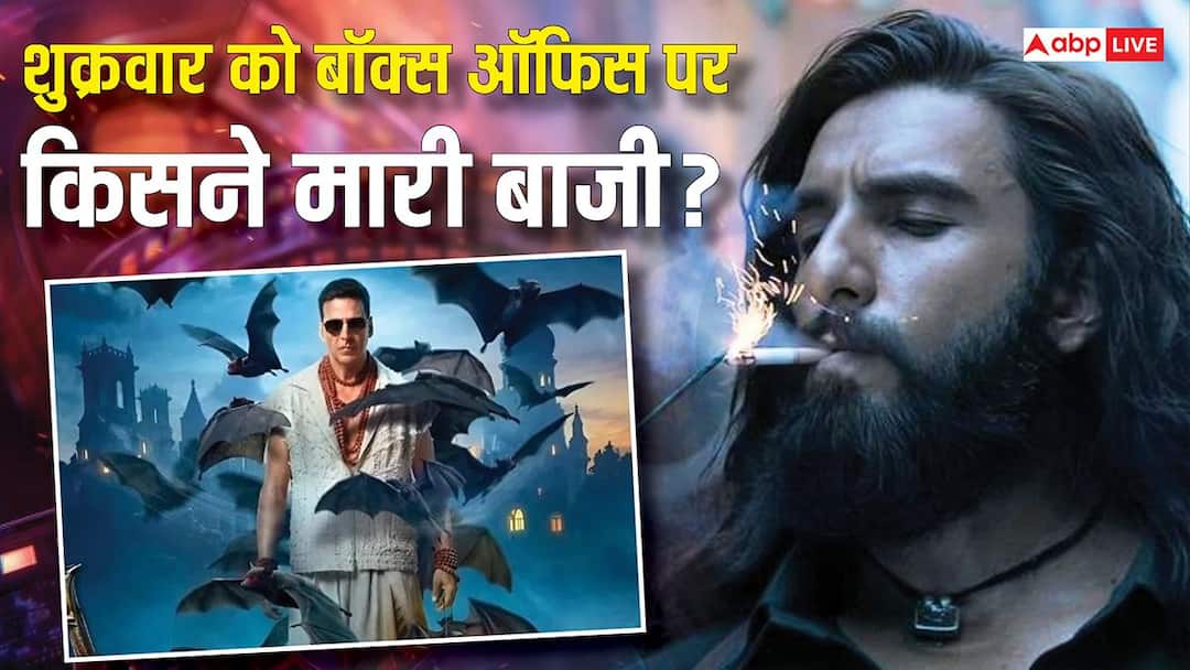 Bhooth Bangla Vs Dhurandhar 2 Box Office Collection Live: अक्षय कुमार की फिल्म 'भूत बंगला' रिलीज होते ही 'धुरंधर 2' की कमाई में रोड़ा बन चुकी है. आदित्य धर की फिल्म की कमाई करोड़ों से घटकर अब लाखों में होने लगी है. इस शुक्रवार अक्षय कुमार की फिल्म की रिलीज का 8वां दिन है और आदित्य धर की फिल्म का 37वां दिन. दोनों ही फिल्मों में कांटे का मुकाबला देखने के लिए मिल रहा है. ऐसे में चलिए बताते हैं दोनों फिल्मों ने शुक्रवार को अभी तक कितनी कमाई कर ली है.  'भूत बंगला' का पहले हफ्ते का कलेक्शन अक्षय कुमार की फिल्म 'भूत बंगला' ने ओपनिंग वीक में कमाल का प्रदर्शन किया और देखते ही देखते इसका इंडिया नेट कलेक्शन 100 करोड़ के करीब पहुंच गया. सैकनिल्क की रिपोर्ट के अनुसार, फिल्म ने 7 दिनों में 84.40 करोड़ का बिजनेस कर लिया. वहीं, आठवें दिन की कमाई मिलाकर इसका कलेक्शन