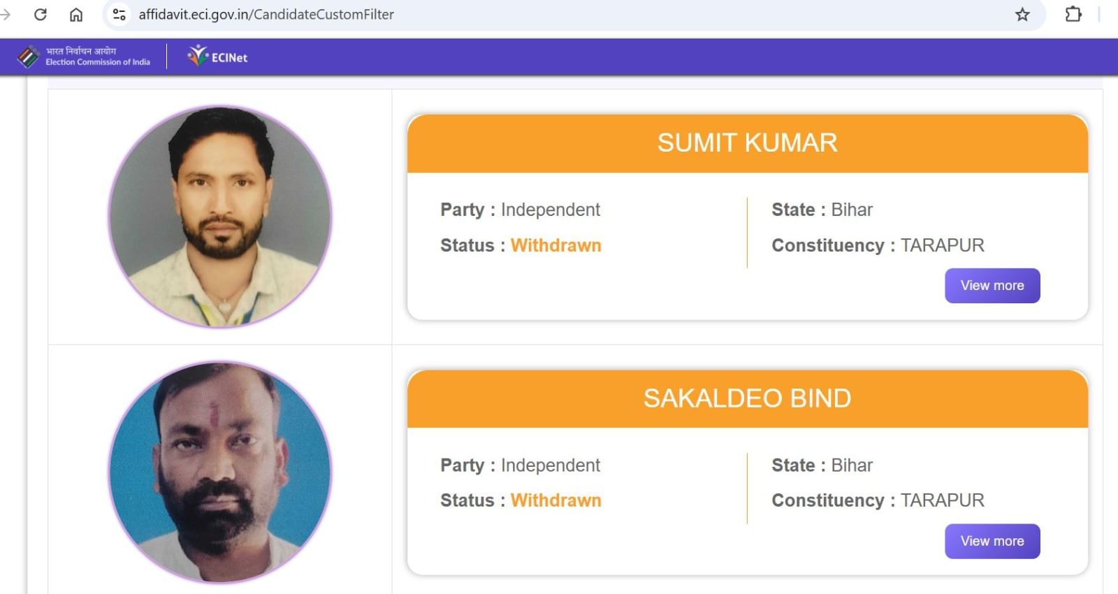 बिहार के उप मुख्यमंत्री सम्राट चौधरी और उनकी पार्टी भाजपा ने तारापुर से VIP उम्मीदवार सकलदेव बिंद की नामांकन वापसी की तस्वीरें शेयर कीं। क्या यहां महागठबंधन ने हथियार डाल दिए, जानिए सही बात