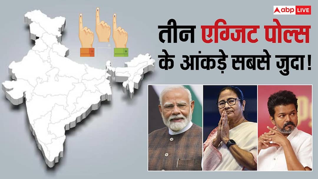 देश के पांच राज्यों में हुए विधानसभा चुनावों के एग्जिट पोल ने सबको चौंकाया है. जहां असम, केरल और पुडुचेरी में बीजेपी के नेतृत्व वाले गठबंधन को बढ़त का संकेत दिया, वहीं पश्चिम बंगाल और तमिलनाडु में करारी शिकस्त दिखाई है. इन दोनों राज्यों में 3 एजेंसियों ने ऐसे आंकड़े पेश किए हैं जो बाकी सर्वेक्षणों से उलट हैं. बंगाल में एक एजेंसी ने बीजेपी को तो दूसरी ने TMC को 200 से ज्यादा सीटें दीं. तमिलनाडु में TVK को 120 सीटें दी हैं. सबके उलट बोलने वाली एजेंसियों ने अनुमान क्या लगाया है? जानेंगे एक्सप्लेनर में… बीजेपी और TMK दोनों को 200 से ज्यादा सीटें ये तीनों एजेंसियां हैं- 'पीपुल्स पल्स', 'जनमत पोल' और 'एक्सिस माय इंडिया'. इनके आंकड़ों ने पश्चिम बंगाल और तमिलनाडु की चुनावी तस्वीर को बेहद नाटकीय और अप्रत्याशित बना दिया है, क्योंकि इन्होंने दो पारंपरिक पार्टियों और एक बिल्कुल नई पार्टी के लिए चौंकाने वाली जीत