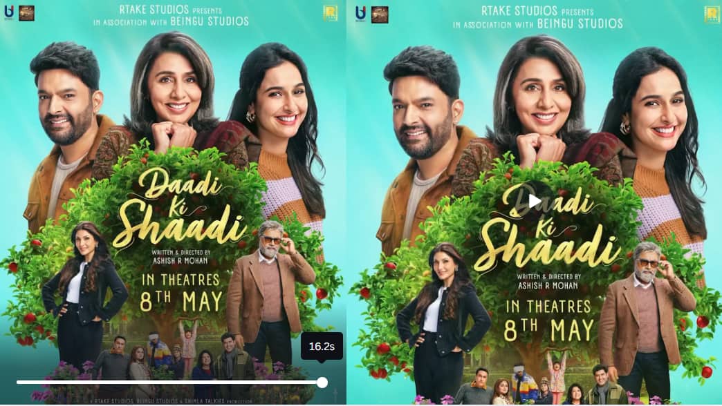 बॉलीवुड के जाने-माने कॉमेडियन और एक्टर कपिल शर्मा पिछले कुछ समय से अपनी अपकमिंग फिल्म 'दादी की शादी' को लेकर चर्चा में बने हुए हैं. यह फिल्म इसलिए खास है, क्योंकि इसमें नीतू कपूर और उनकी बेटी रिद्धिमा कपूर साहनी भी नजर आएंगी. पहली बार बनी तीनों की तिकड़ी देखने के लिए दर्शक बेताब हैं. अब 'दादी की शादी' का पहला पोस्टर रिलीज हो गया है, जिसमें सभी सितारों की झलक दिख रही है. इस फैमिली कॉमेडी फिल्म की रिलीज डेट का भी ऐलान हो गया है.  8 मई को रिलीज होने वाली है फिल्म'दादी की शादी' 8 मई, 2026 को सिनेमाघरों में रिलीज होने वाली है. कपिल ने इंस्टाग्राम पर फिल्म का पहला पोस्टर शेयर किया है, जिसे फैंस काफी पसंद कर रहे हैं. उन्होंने कैप्शन में लिखा, दादी इंटरनेट पर धूम मचा रही हैं और सारे नियम भी तोड़ रही हैं! क्या परिवार उनके साथ है या उनके खिलाफ?